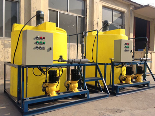 加藥裝置根據所需藥劑濃度,在攪拌箱內配置,經攪拌器攪拌均勻后投入溶液箱、用計量泵向投藥點或指定系統中輸送所配制的溶液。成套加藥裝置具有結構緊湊、安全簡單、操作使用簡便等特點。加藥裝置還可根據用戶不同工藝流程的要求,進行有針對性的設計、配置必要的部件,實現自動遠程控制等功能。